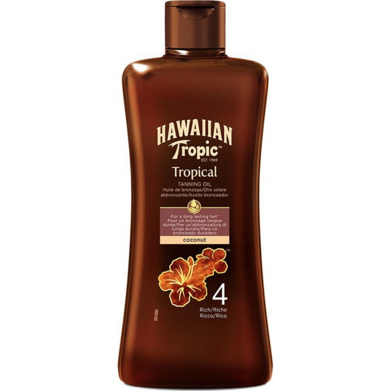 Bronzage profond et doré pour une peau douce et brillante. Avec une formule enrichie à la vitamine C & E. Protection efficace contre les rayons UVA/UVB. Son exclusif parfum tropical au coco et papaye, bronzage intense. Huile de bronzage Paraffinum liquidum, cocos nucifera oil, amyl acetate, theobroma cacao seed butter, persea gratissima oil, aleurites moluccana seed extract, carica papaya fruit extract, colocasia antiquorum root extract, mangifera indica fruit extract, passiflora incarnata fruit extract, plumeria acutifolia flower extract, psidium guajava fruit extract, lanolin, aloe barbadensis leaf extract, eucalyptus globulus leaf oil, parfum, benzyl alcohol. www.hawaiiantropic.eu. Produit unitaire EAN 5099821001070.