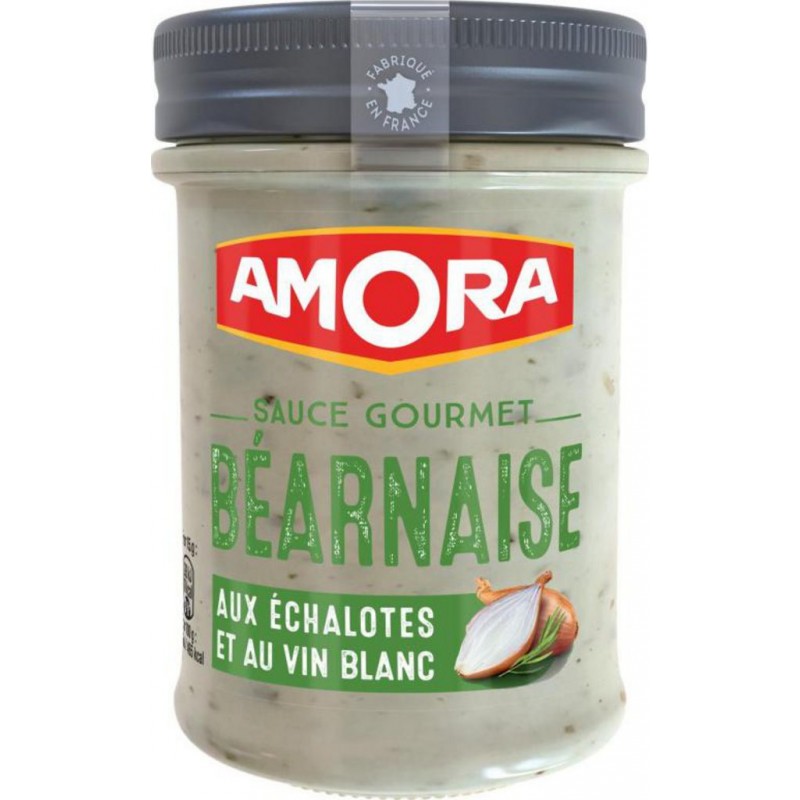 La gamme Amora Sauces Gourmets ne contient ni colorant ni arôme artificiel. Son goût authentique provient de ses bons ingrédients, de ses délicats petits morceaux et de sa texture onctueuse. Le tout fabriqué en France. Avec les sauces de variétés Amora, donnez du goût à vos plats du quotidien en toute simplicité. Lot économique de 5 pots. Huile de colza, eau, vin blanc 12% (dont SULFITES), vinaigre de vin blanc (dont SULFITES), jaune d'OEUF, BEURRE concentré, sucre, amidon modifié de pomme de terre, échalote 2%, sel, estragon 0,6%, acidifiant: acide LACTIQUE, épaississant: gomme guar, échalote en poudre 0,3%, conservateur: sorbate de potassium, poivre, cerfeuil, persil. Produit unitaire EAN 8714100908068, lot de 5 EAN 3701018085818.