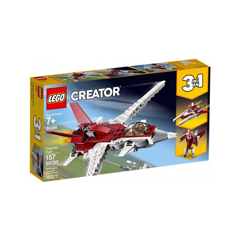 Préparez-vous à découvrir L’avion futuriste LEGO® Creator 3-en-1 31086, comprenant un système doté de rouge foncé et blanc, des ailes orientées vers l’avant, un cockpit teinté, un train d’atterrissage fixe et un moteur de jet avec flammes. Avec cet ensemble LEGO Creator 3-en-1, il est possible de vivre 3 expériences différentes de construction et de jeu. Construisez l'avion futuriste puis transformez-le en vaisseau spatial ou en robot LEGO futuriste avec des ailes et un sac à dos pour davantage de plaisir de science-fiction. Permet de vivre 3 possibilités de construction avec cet ensemble 3-en-1 LEGO® Creator. Permet de construire l’avion futuriste, puis de le transformer et de partir dans l’espace avec un vaisseau spatial futuriste ou de vivre des aventures de science-fiction avec un robot futuriste volant. L'avion futuriste comprend des ailes orientées vers l'avant, un cockpit teinté, un train d'atterrissage fixe et un moteur de jet avec des flammes. Avec des coloris rouge foncé et blanc. Permet de prendre les commandes de cet avion en direction du ciel pour des aventures de jet supersoniques. L’avion futuriste mesure plus de 7cm de haut, 20cm de long et 22cm de large. Le vaisseau spatial futuriste mesure plus de 4cm de haut, 17cm de long et 14cm de large. Le robot futuriste mesure plus de 10cm de haut. De magnifiques constructions d'un avion futuriste, d'un vaisseau spatial ou d'un robot avec cet ensemble LEGO® Creator 3-en-1! Produit unitaire EAN 5702016367812.