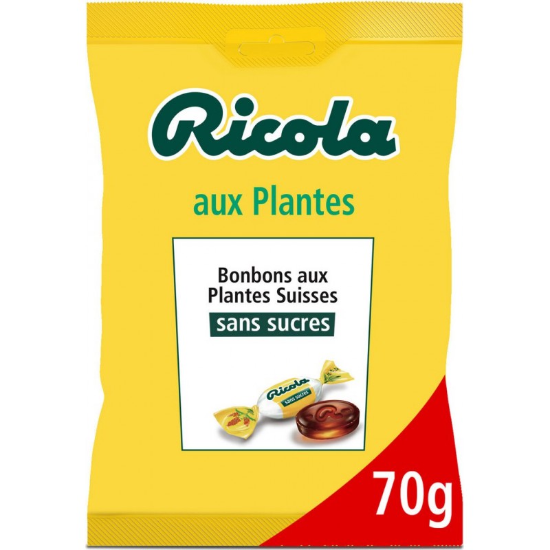 Bonbons aux plantes suisses, sans sucres. Le bonbon Original aux 13 plantes. Edulcorant (isomalt), extrait (1%) du mélange de 13 plantes Ricola, colorant (caramel ordinaire), édulcorant (glycosides de stéviol), huiles essentielles de menthe et menthe poivrée, menthol. Produit unitaire EAN 7610700601624.