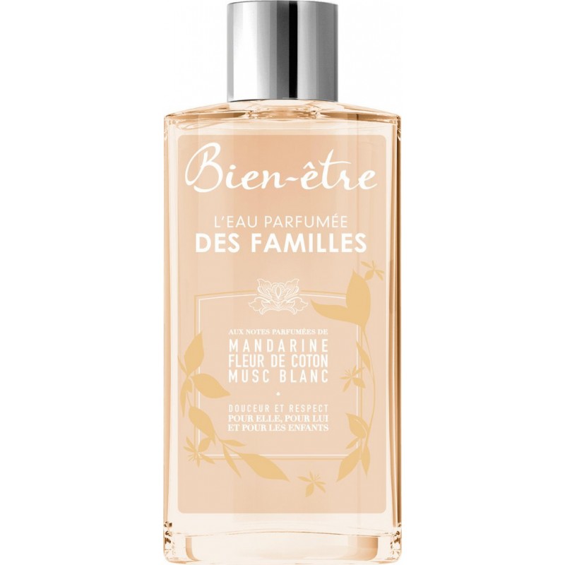 Bien-être vous propose de découvrir tous les bienfaits de son Eau Parfumée des Familles. Elle accompagne toute la famille des ses nôtes fraîches de mandarine, de coton et de musc blanc. 560040 02 - INGREDIENTS: ALCOHOL DENAT. - AQUA / WATER - DIPROPYLENE GLYCOL - GLYCERIN - PARFUM / FRAGRANCE - PEG-8 - ETHYLHEXYL METHOXYCINNAMATE - BHT - BUTYL METHOXYDIBENZOYLMETHANE - ETHYLHEXYL SALICYLATE - CI 17200 / RED 33 - CI 15510 / ORANGE 4 (F.I.L. B219614/1). Les listes d’ingrédients entrant dans la composition des produits de notre marque sont régulièrement mises à jour. Avant d’utiliser un produit de notre marque, vous êtes invités à lire la liste d’ingrédients figurant sur son emballage afin de vous assurer que les ingrédients sont adaptés à votre utilisation personnelle. Produit unitaire EAN 3600550272543.