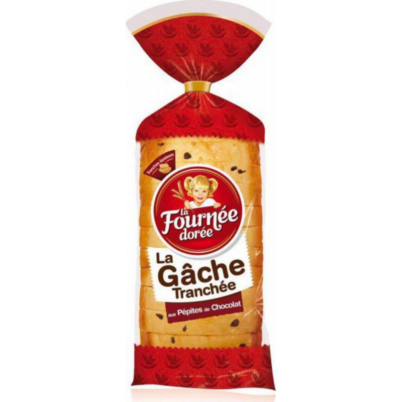 Découvrez cette recette inspirée de la Gâche traditionnelle vendéenne préparée avec de la crème fraîche et des oeufs frais et agrémentée de pépites de chocolat.Recette gourmande riche en chocolat noir et lait (10% de pépites) Tranches épaisses. Farine de BLE, sucre, eau, OEUFS entiers frais, pépites de chocolat au LAIT 6% (sucre, poudre de LAIT entier, beurre de cacao, pâte de cacao, arôme naturel de vanille, lécithine de SOJA), pépites de chocolat 6% (sucre, pâte de cacao, beurre de cacao, lécithine de SOJA, arôme naturel de vanille), huiles végétales (palme, colza), CREME fraîche, BEURRE concentré, levure, GLUTEN de BLE, sel, arôme naturel, émulsifiants (Mono et diglycérides d'acides gras, Stéaroyl-2-lactylate de sodium), poudre de LAIT écrémé, protéines de LAIT, arôme, levure désactivée, colorant (béta carotène). Traces éventuelles de FRUITS A COQUE. Produit unitaire EAN 3587220551507.