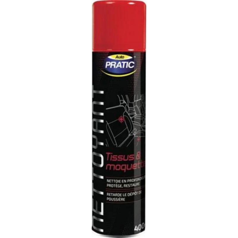 Le nettoyant tissus et moquettes Auto Pratic élimine rapidement toutes saletés accumulées sur les sièges en tissu, sur les tapis et moquettes de l'habitacle pour qu'ils retrouvent leur couleur d'origine. Sa mousse fine et légère traite les fibres en profondeur. Son action antistatique retarde le dépôt de poussières. Convient également pour un usage domestique. Produit unitaire EAN 3301750042089.