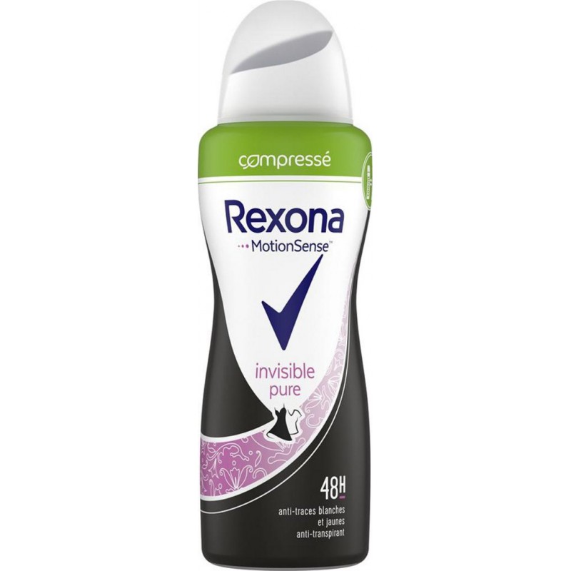 Grâce à sa formule anti-traces, l'anti-transpirant Rexona Invisible Pure Compressé vous protège de la transpiration et des odeurs corporelles sans laisser de traces blanches sur vos vêtements. Butane, Isobutane, Cyclopentasiloxane, Propane, Aluminum Chlorohydrate, PPG-14 Butyl Ether, Parfum, Disteardimonium Hectorite, Propylene Carbonate, Caprylic/Capric Triglyceride, Gelatin Crosspolymer, Cellulose Gum, Sodium benzoate, Aqua, Hydrated Silica, Sodium Starch Octenylsuccinate, Maltodextrin, Hydrolyzed Corn Starch, Silica, BHT, Alpha-Isomethyl Ionone, Benzyl alcohol, Benzyl Salicylate, Citronellol, Geraniol, Hydroxycitronellal, Limonene. Produit unitaire EAN 0000096085752.