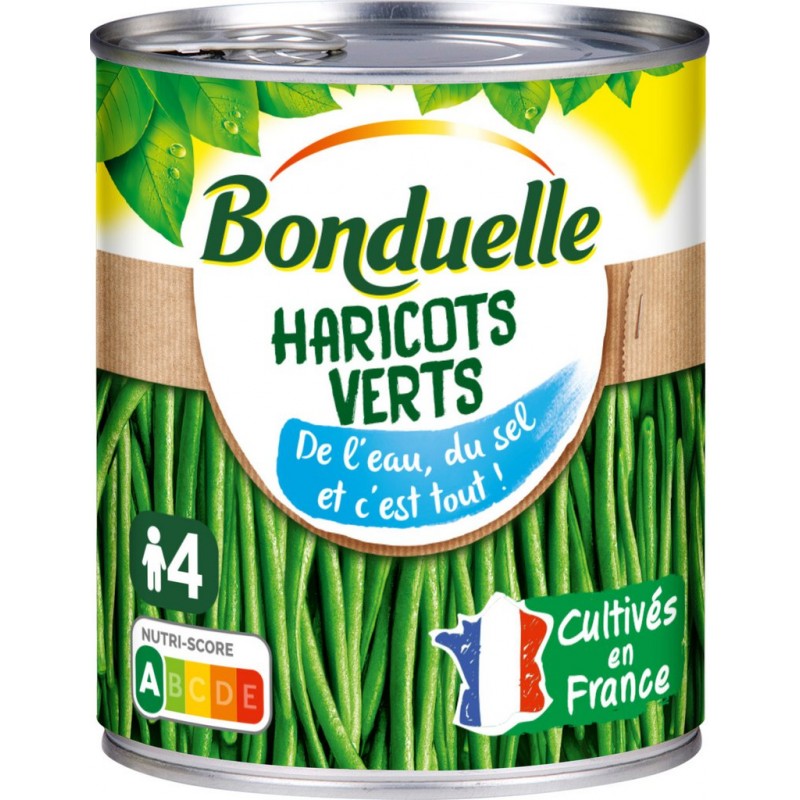 Cultivés en France, nos haricots verts sont soigneusement sélectionnés, cueillis à maturité, récoltés et mis en boîte dans la même journée. De l'eau, un peu de sel et c'est tout: ils sont sans conservateur* * Les légumes en conserve ne nécessitent pas d'ajout de conservateur conformément à la réglementation. Haricots verts extra-fins 55%, eau, sel 0,7%. Produit unitaire EAN 3083681127850.