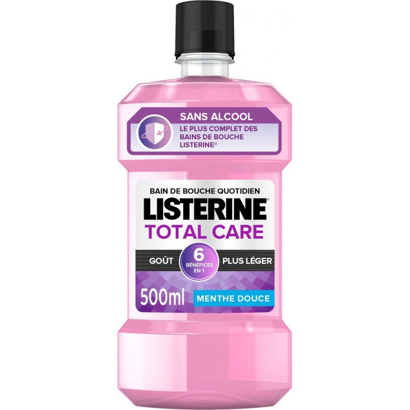 GOÛT PLUS LÉGER - SANS ALCOOL Le plus complet des bains de bouche LISTERINE® 6 BÉNÉFICES EN 1: 1. Réduit la plaque. 2. Renforce les dents 3. Garde les dents plus blanches 4. Aide à prévenir les gencives sensibles 5. Elimine les bactéries 6. Rafraîchit l’haleine durablement Recommandé par l'UFSBD - testé cliniquement. Aqua, sorbitol, propylene glycol, poloxamer 407, sodium lauryl sulfate, aroma, eucalyptol, zinc chloride, benzoic acid, sodium benzoate, methyl salicylate, thymol, sodium saccharin, sodium fluoride, menthol, sucralose, Cl 16035, Cl 42090.u003cbr Contient du fluorure de sodium (220 ppm F).u003cbr u003cbr Listerine à votre écoute au 00800 260 26 000. Produit unitaire EAN 3574661404219.