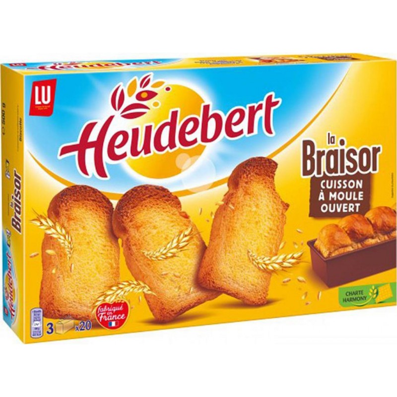 La Braisor Heudebert, une pâte levée qui lui donne une forme généreuse. Lot économique de 6 paquets. Farine de BLÉ 95,8%, levure, huile de palme, sirop de glucose-fructose, sel, agent de traitement de la farine (acide ascorbique). PEUT CONTENIR LAIT, SÉSAME. Produit unitaire EAN 3392460484184, lot de 6 EAN 3701018091550.