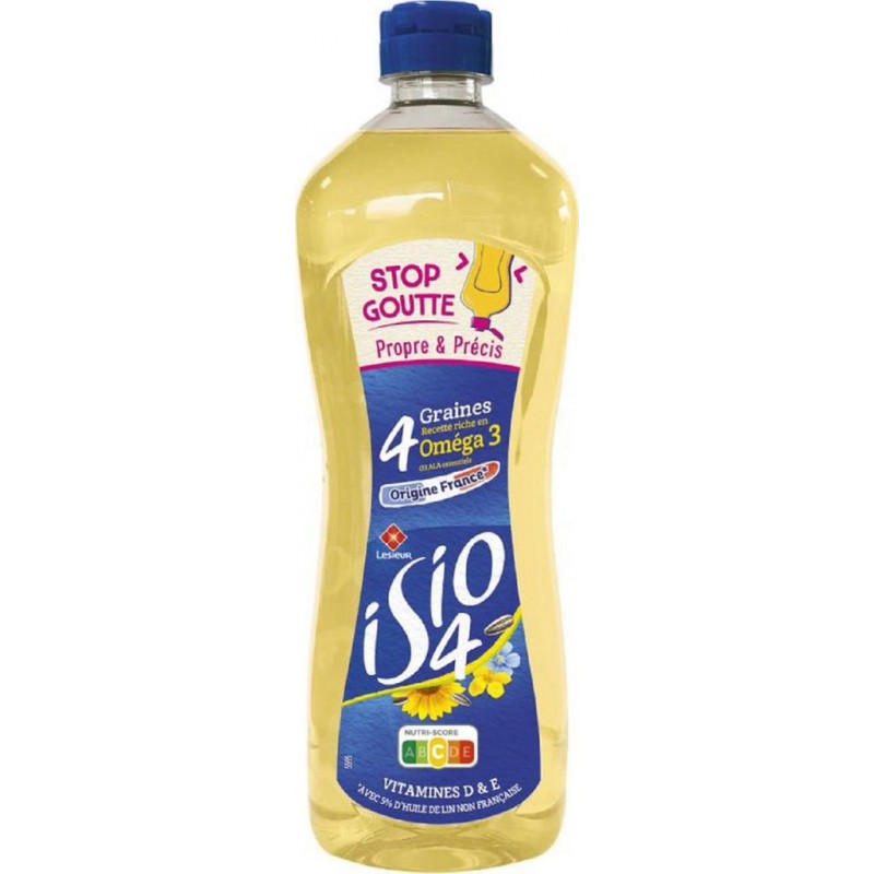 L’huile ISIO 4 est la combinaison unique produite en France de 4 huiles de graines (Tournesol, Colza, Oléisol®*, Lin) qui vous apporte les bienfaits de 4 nutriments essentiels. Oméga 3 et 6 - Vitamine E - Vitamine D L’huile ISIO 4 assaisonnera parfaitement toutes vos salades et crudités, mais convient aussi pour cuisiner tous vos plats à la poêle, à la cocotte, au four, et même en friture! * huile de tournesol à haute teneur en acide oléique. Huile de colza 47%, Huile de tournesol 43%, Oléisol (huile de tournesol à haute teneur en acide oléique) 5%, Huile de lin 5%, Huile essentielle de coriandre, Vitamine D. Fabriqué en France à partir d'huiles de colza, tournesol et oléisol françaises, et de lin non française. Produit unitaire EAN 3265472161001.