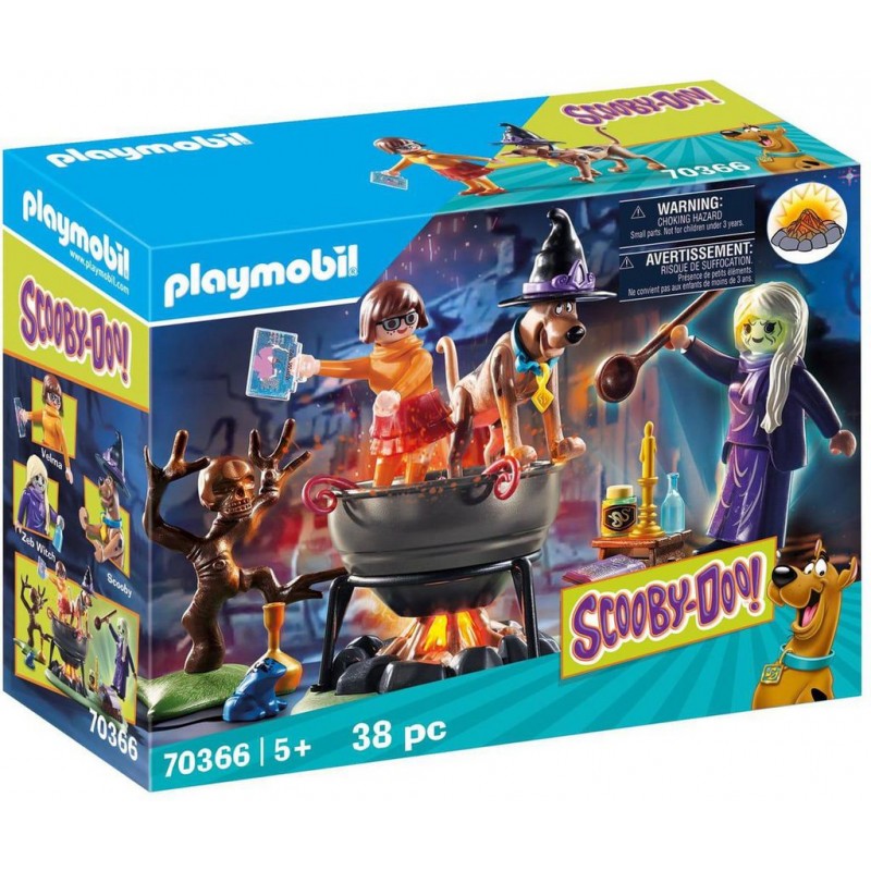 Scooby-Doo et Vera viennent de découvrir le repère de la sorcière et cette dernière veut les mettre dans le chaudron. Contient le personnage de Scooby-Doo, de Vera et une sorcière, un chaudron et un feu. Le feu s'illumine. Histoires dans le Chaudron de la Sorcière. Produit unitaire EAN 4008789703668.