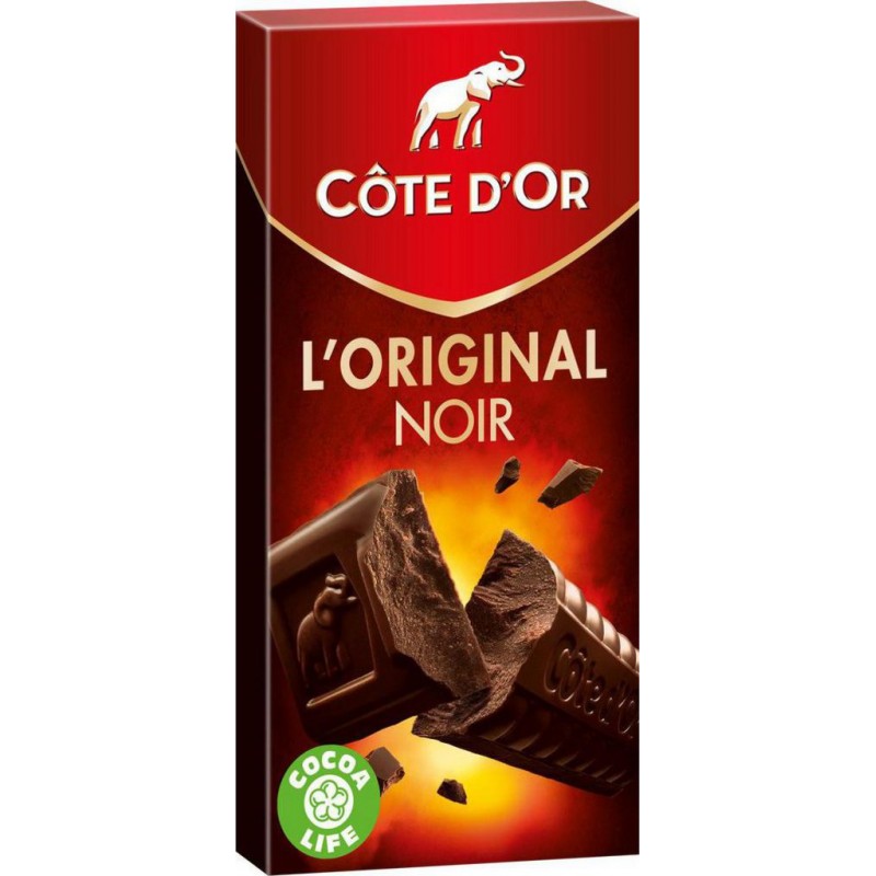 Cassez une barre et savourez le goût unique et intense du chocolat noir Côte d’Or. Lot économique de 6 tablettes. Sucre, pâte de cacao, beurre de cacao, émulsifiants (lécithine de SOJA), arôme, LAIT entier en poudre. Cacao: 46% minimum. PEUT CONTENIR FRUITS A COQUE. Produit unitaire EAN 5410081200445, lot de 6 EAN 3665816027329.