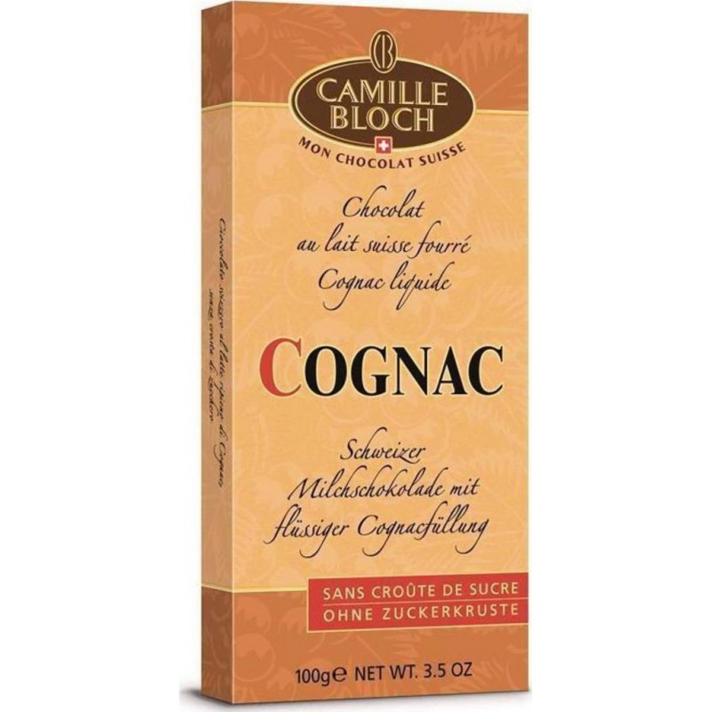 sucre, beurre de cacao, poudre de LAIT entier, cognac (10%), sirop de glucose, pâte de cacao, poudre de LAIT écrémé, eau, extrait de vanille, émulsifiant: lécithine de colza. Chocolat au lait: 31% cacao minimum. Peut contenir des traces d'AMANDES, NOISETTES, SOJA. Contient de l'alcool. Produit unitaire EAN 7610008633006.