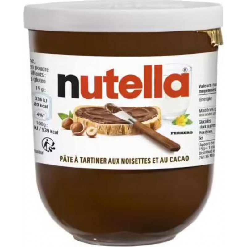 Nutella® est sur les tables du petit-déjeuner de millions de personnes dans le monde depuis plus de 50 ans, offrant de bons moments pour commencer la journée. Une tranche de pain avec du Nutella® a un goût délicieux. Grâce à notre recette unique et inimitable, Nutella® est devenu la pâte à tartiner aux noisettes et au cacao la plus populaire et emblématique du monde. sucre, huile de palme, NOISETTES 13%, LAIT écrémé en poudre 8,7%, cacao maigre 7,4%, émulsifiants: lécithines SOJA, vanilline. Produit unitaire EAN 0000080135463.