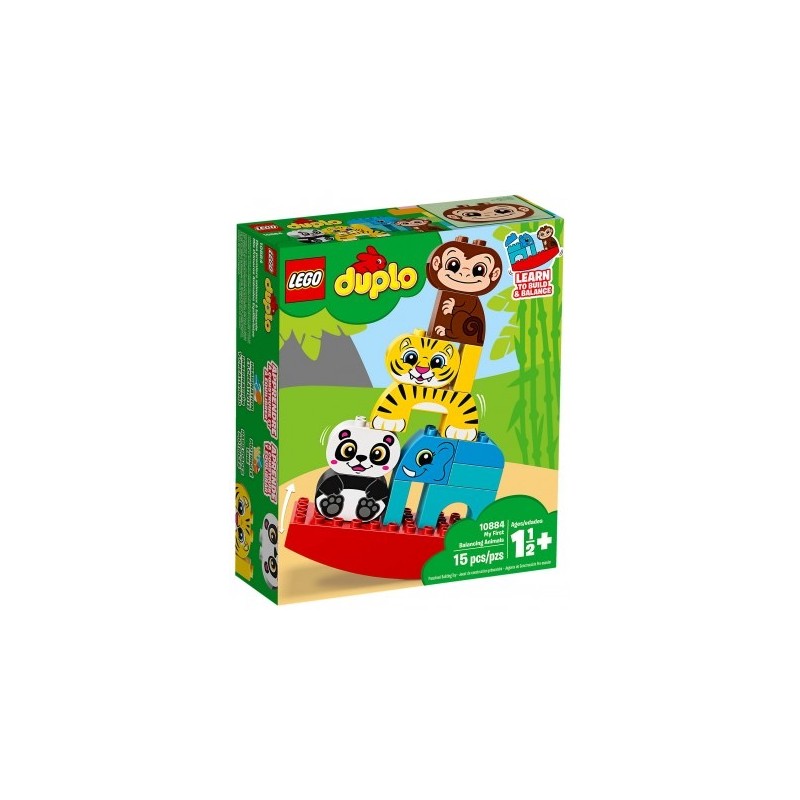 Les tout-petits auront beaucoup de plaisir à apprendre à construire et jouer avec Ma première balançoire des animaux LEGO® DUPLO® 10884! Amusez-vous à empiler les animaux de la jungle aux couleurs vives sur la balançoire de différentes manières et regardez comment fonctionne ce jeu d'équilibre mignon et astucieux! Les animaux colorés, le singe, l'éléphant, le tigre et le panda, sont faciles à construire et à reconstruire avec de grandes briques DUPLO. Il y a également 2 briques supplémentaires pour aider à équilibrer la balançoire ou la maintenir stable en les plaçant en dessous. Les briques LEGO DUPLO sont spécialement conçues pour être sûres et adaptées aux petites mains. Comprend une balançoire à bascule et 4 animaux à construire: un singe, un tigre, un éléphant et un panda, ainsi que 2 briques supplémentaires. Permet de s'amuser à construire les puzzles d’animaux en 3D avec un jeune enfant et à développer les compétences linguistiques en parlant des différents animaux de la jungle. Un grand nombre d'animaux sur ce jouet d'équilibre pour tout-petits et il suffit de les déplacer pour voir comment il bascule. Il est possible d'utiliser des briques supplémentaires pour immobiliser la balançoire et d'exposer ce jouet d’animaux colorés pour les enfants! Les possibilités illimitées de jeu créatif des jouets LEGO® DUPLO® permettent aux tout-petits de devenir des penseurs créatifs. Les produits LEGO® DUPLO® sont amusants et sûrs pour les jeunes enfants. Cet ensemble de jeu d'animaux est un cadeau idéal pour les tout-petits. Chaque animal mesure plus de 8cm de haut, 6cm de large et 3cm de profondeur. La balançoire mesure plus de 4cm de haut, 19cm de long et 6cm de large. Une aide peut être nécessaire pour équilibrer les animaux de la jungle sur la balançoire avec ce jouet d’empilage amusant! Produit unitaire EAN 5702016367560.