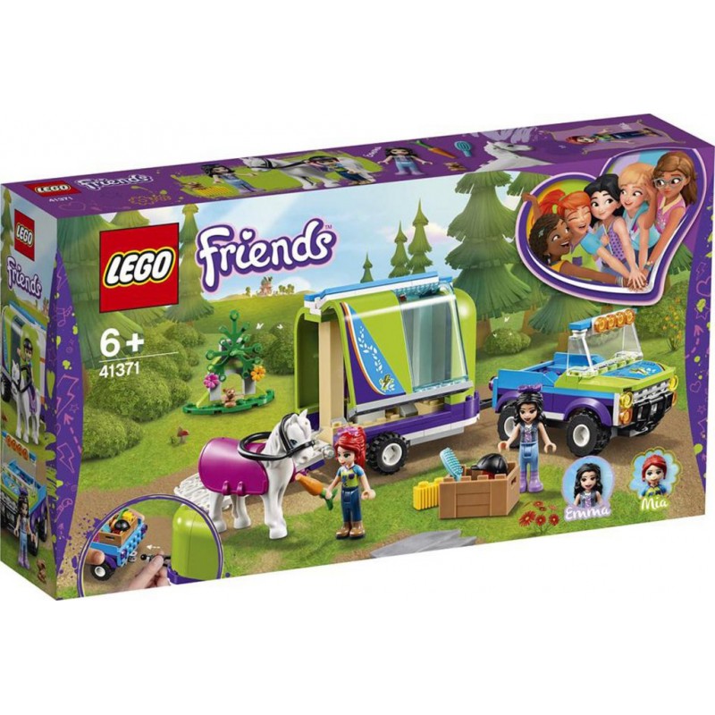 C'est le temps idéal pour une petite promenade à cheval au grand air et en forêt avec l'ensemble La remorque à chevaux de Mia LEGO® Friends 41371. Grâce aux fonctions réalistes, les enfants passionnés d'animaux peuvent jouer à prendre soin d'un cheval. La remorque possède un hayon à charnières pour que le cheval puisse monter. Un panneau latéral articulé permet de charger rapidement tout le matériel d'équitation dont les filles ont besoin. L'ensemble comprend également un 4x4 LEGO pour tracter la remorque dans les bois. Les enfants peuvent explorer la forêt à cheval aux côtés des deux amies et observer la faune sauvage. Une fois la promenade terminée, les enfants peuvent prendre soin du cheval blanc en le pansant et en lui donnant du foin. Pour une expérience de construction LEGO® unique, Instructions PLUS est disponible dans l'appli LEGO Life pour smartphones et tablettes. Ces instructions de montage intuitives et faciles à utiliser permettent aux enfants de zoomer, faire pivoter et visualiser leurs créations en utilisant le mode fantôme spécial. Instructions PLUS permet également de guider les constructeurs plus jeunes tout au long du processus de construction, pour un plus grand sentiment d’indépendance et de réussite. L'ensemble inclut 2 mini-poupées et 2 animaux. Cet ensemble sur le thème du cheval inclut 2 mini-poupées: Mia et Emma, plus un cheval et un lapin. Comprend un buggy 4x4 à construire et une remorque LEGO® Friends avec panneau latéral et hayon articulés, un décor de forêt à construire pour le lapin et une caisse d'accessoires pour le cheval. Profitez d'une belle balade à cheval pour découvrir les animaux de la forêt aux côtés de Mia et Emma! Produit unitaire EAN 5702016369151.