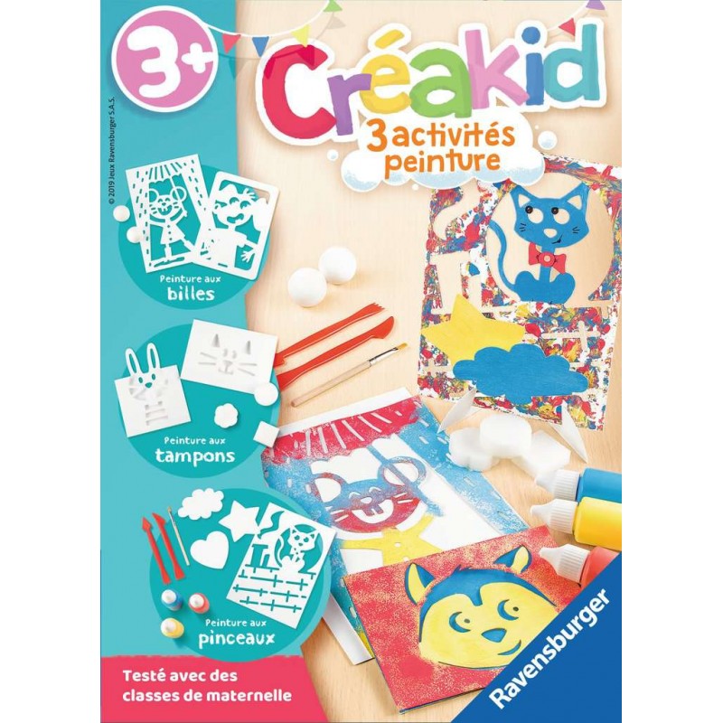 Créakid: la gamme dédiée aux enfants 3 ans et qui propose une découverte encadrée et ludique, pour expérimenter ses capacités motrices, explorer son imaginaire, apprendre à créer! Un kit ludique dédié à la découverte de la peinture. Pour apprendre à peindre avec des billes, des tampons ou divers outils comme l'incontournable pinceau, tout en s'amusant! Créakid, un jeu pour apprendre à percevoir, sentir, imaginer et créer. Pour faire travailler son imagination et développer sa motricité fine! A partir de 3 ans. Produit unitaire EAN 4005556180783.