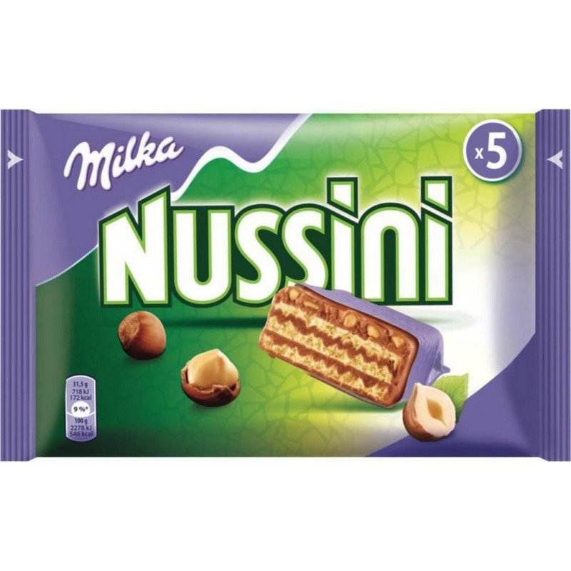 Découvrez Milka Gaufrette croustillante fourrée crème confiseur au bon goût noisette, recouverte de noisettes en éclats, enrobée de chocolat au lait du pays alpin. Lot économique de 3 paquets. Sucre, farine de BLÉ, graisses végétales (palme, karité), NOISETTES (9,5%), lactosérum en poudre (de LAIT ), beurre de cacao, LAIT en poudre écrémé, pâte de cacao, BEURRE concentré, cacao maigre en poudre, amidon, émulsifiants (lécithine de SOJA, E476), huile de colza, arômes, sel, poudres à lever (carbonate acide de sodium, carbonate acide ďammonium). Produit unitaire EAN 7622210696861, lot de 3 EAN 3665816025967.