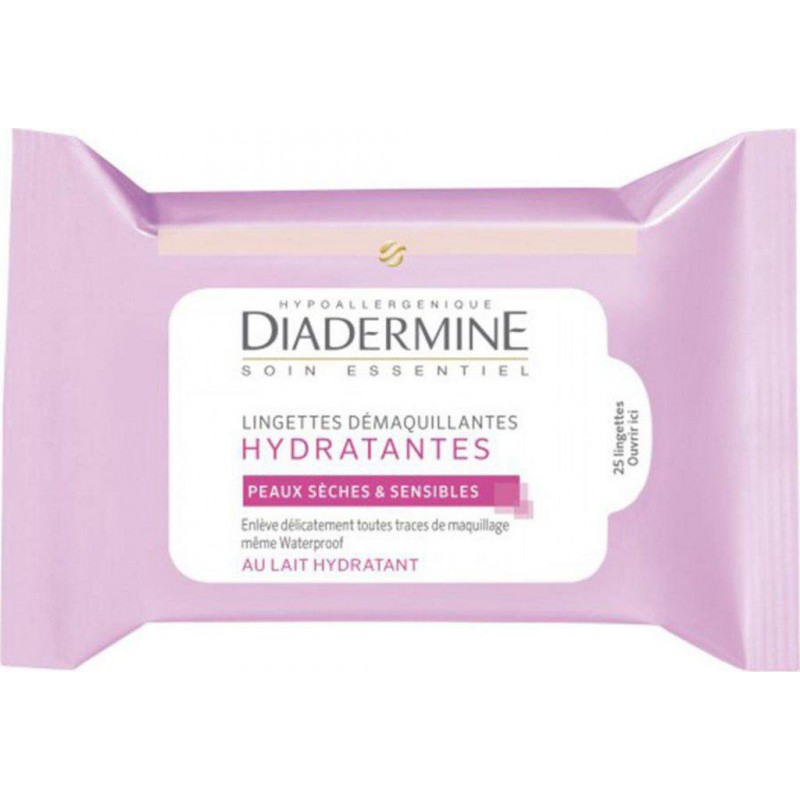 Spécialement dédiées aux peaux sèches et sensibles, les lingettes Démaquillantes Hydratantes DIADERMINE enrichies en lait hydratant enlèvent efficacement les impuretés et toutes traces de maquillage, même waterproof, tout en apportant à la peau l’hydratation dont elle a besoin. Aqua · Glycerin · Paraffinum Liquidum Liquidum · PPG-15 Stearyl Ether · Parfum · Steareth-10 · Glyceryl Stearate · PEG-30 Stearate · PEG-8 · Citric Acid · Phenoxyethanol · Potassium Sorbate · Ethylparaben · Methylparaben. Produit unitaire EAN 4015000503136.